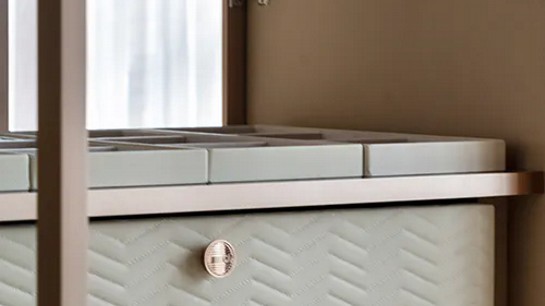 As cores são determinantes para dar personalidade aos closets abertos e, neste ano, a tendência é apostar em paletas neutras, mas com profundidade e textura. Tons como bege, cinza e marrom surgem em versões mais sofisticadas, acompanhados de acabamentos acetinados ou levemente texturizados, que adicionam riqueza visual.