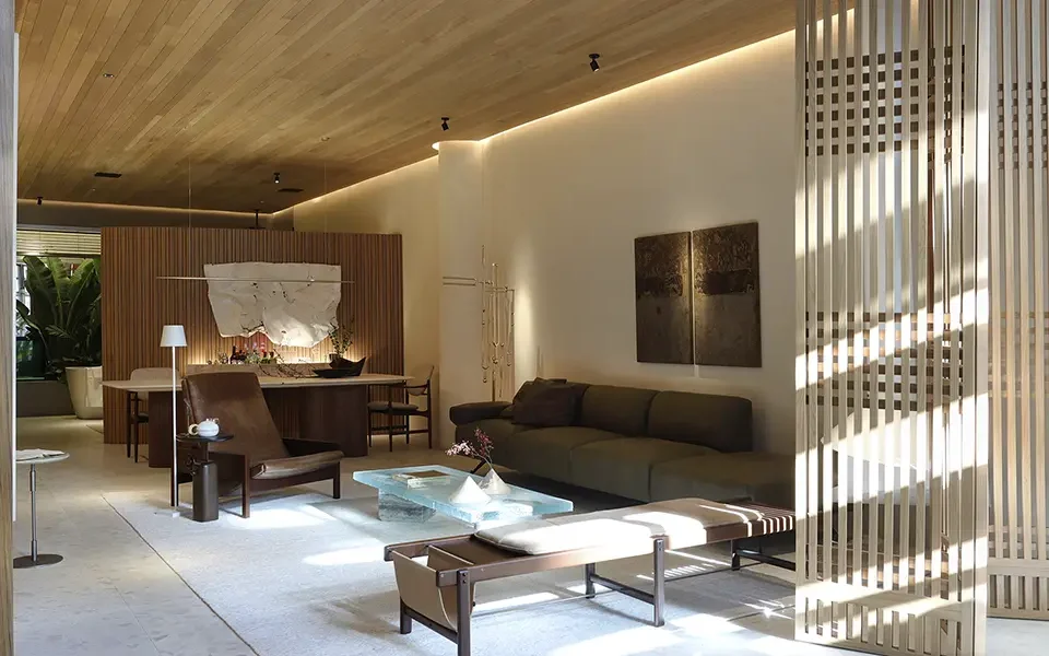 No design contemporâneo, essas referências aparecem reinterpretadas de maneira sutil. Linhas retas e simétricas, paletas em off-white, areia, nude ou gelo, além de madeiras naturais e texturas suaves, traduzem a mesma busca por harmonia — agora adaptada a ambientes mais minimalistas e funcionais.